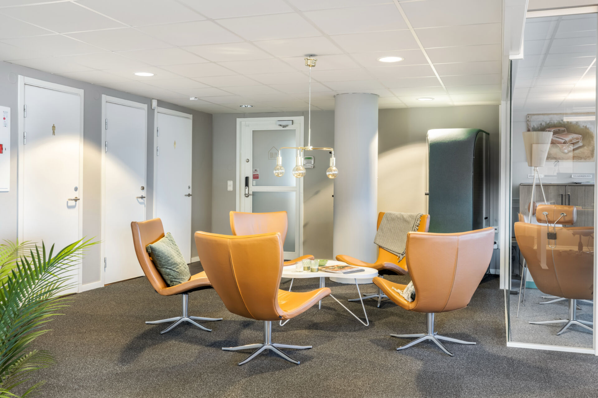 Här är en superfin lokal för det lite mindre företaget upp till 12 arbetsplatser. Idag har lokalen en öppen planlösning med en inbjudande entré samt ett par kontor/mötesrum som totalt innefattar 7st arbetsplatser men det går att justera om fler platser efterfrågas.