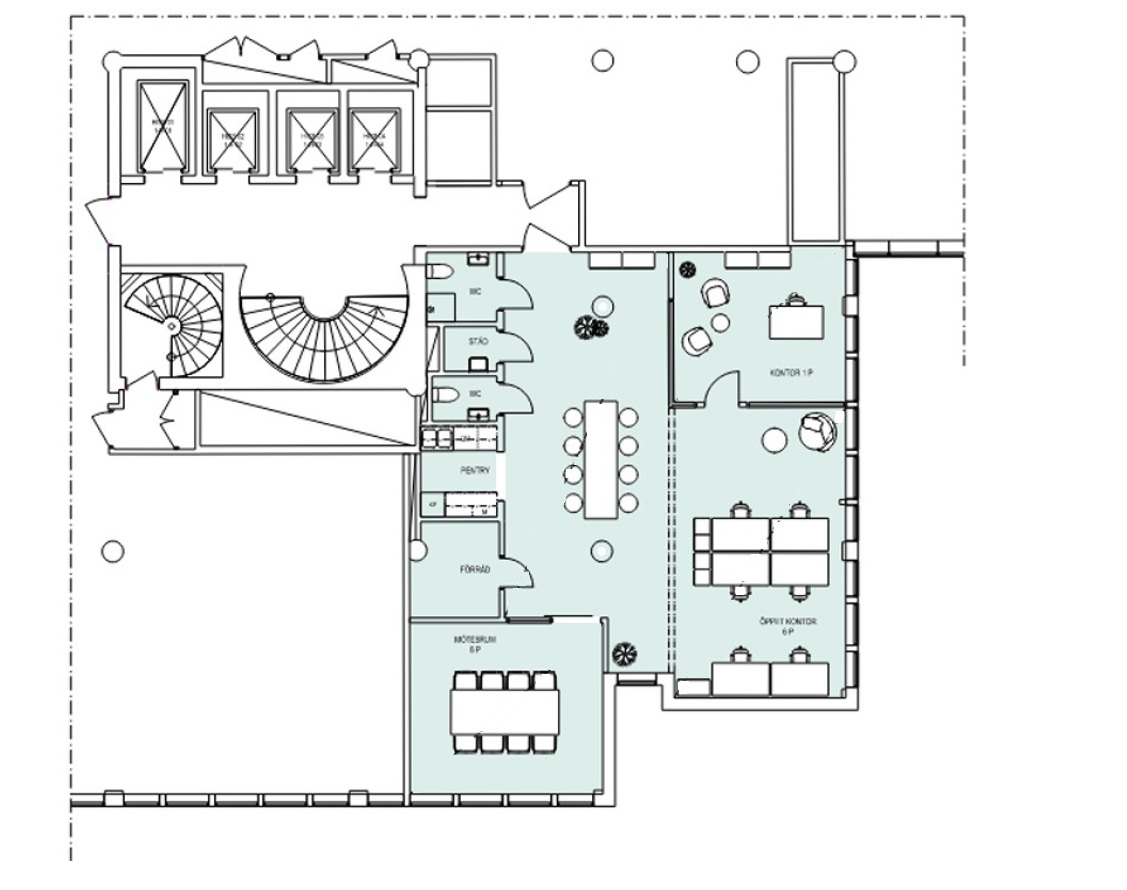125 m², 12 arbetsplatser, våning 6, tillträde enligt överenskommelse