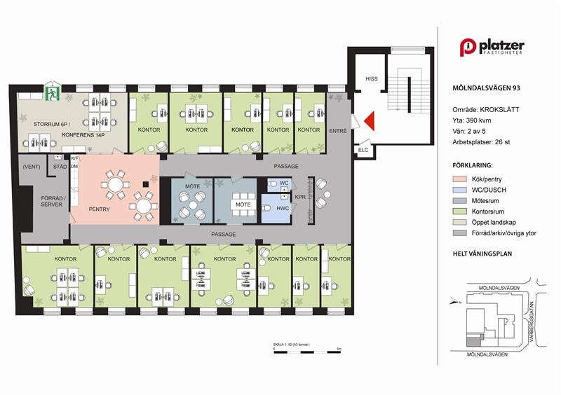 Rakt på sak – här finns ett ljust och mycket trevligt kontor i en fastighet som du enkelt når oavsett på vilket sätt du föredrar att ta dig till arbetet, med spårvagn, cykel eller bil. Området längs Mölndalsvägen har utvecklats mycket de senaste åren och här finns nu en fin blandstad med riktigt bra service för både boende och arbetsplatser. Tvärs över gatan löser ICA Maxi vardagspusslet och innehållet i matlådan. Är träning målet ligger Nordic Wellness några hundra meter bort och innan eller efter träningen kan man unna sig goda franska bakverk från Maison Caillard Boulangerie & Pâtisserie. För att nämna något.