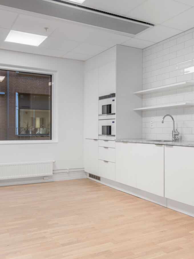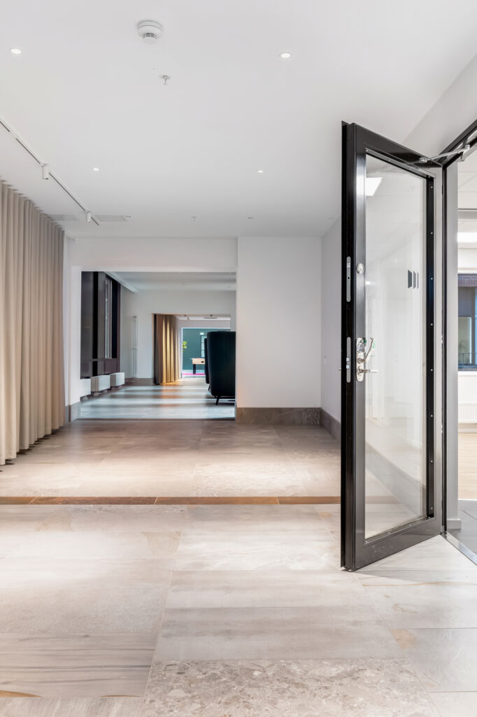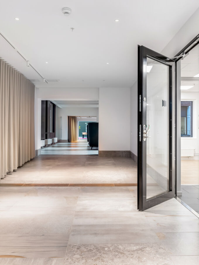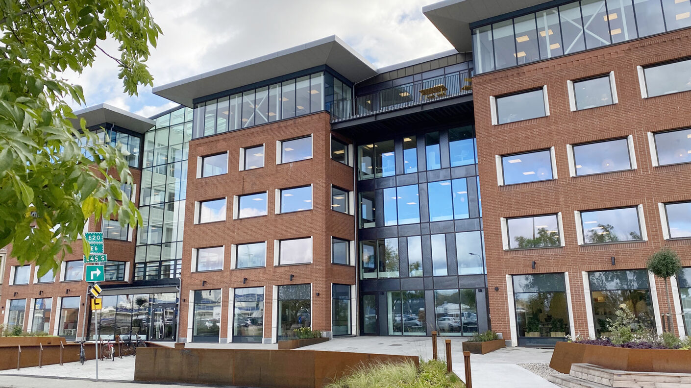 På Kämpegatan, i expansiva Lilla Bommen precis intill Göta älv, står denna tvillingbyggnad som uppfördes 1988. Under 2018/2019 genomgick huset en omfattande utveckling, renovering och ombyggnation som du kan läsa mer om i artikeln ”En total omvandling – huset står nu redo för framtiden”. Varje våningsplan har en entrédel som är öppen mot den inglasade ljusgården med utsikt över Göta älv. Ljusgården och bottenplanet inbjuder till umgänge. Nu finns också ett extra våningsplan med takterrass. Lilla Bommen ligger inom Älvstaden - Nordens största stadsutvecklingsprojekt – där Göteborgs Centrum ska växa till dubbel storlek.