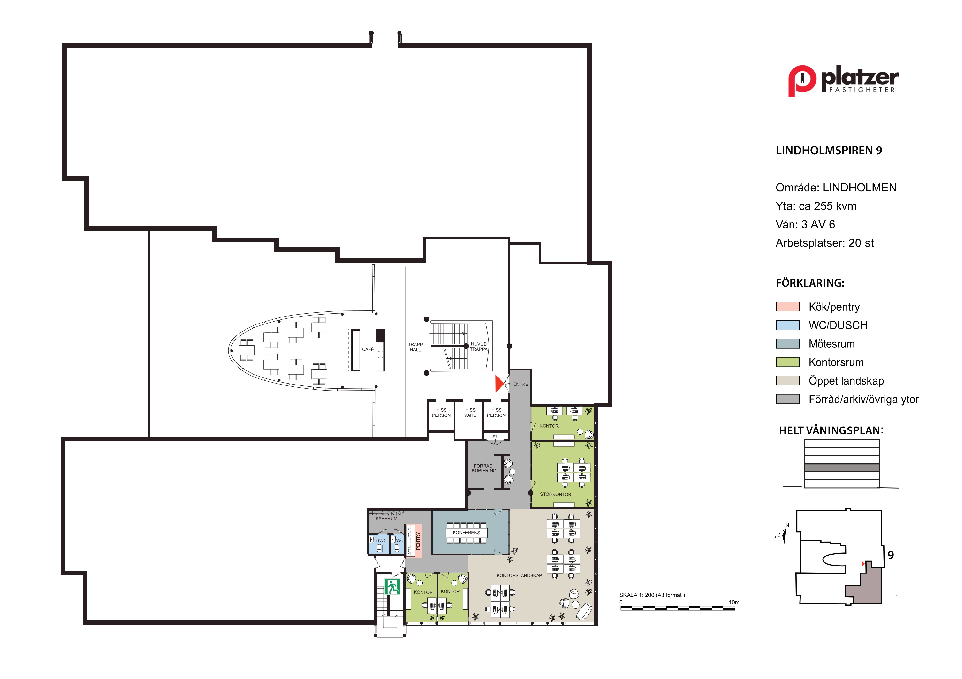 255 m², 20 arbetsplatser, våning 3, tillträde enligt överenskommelse