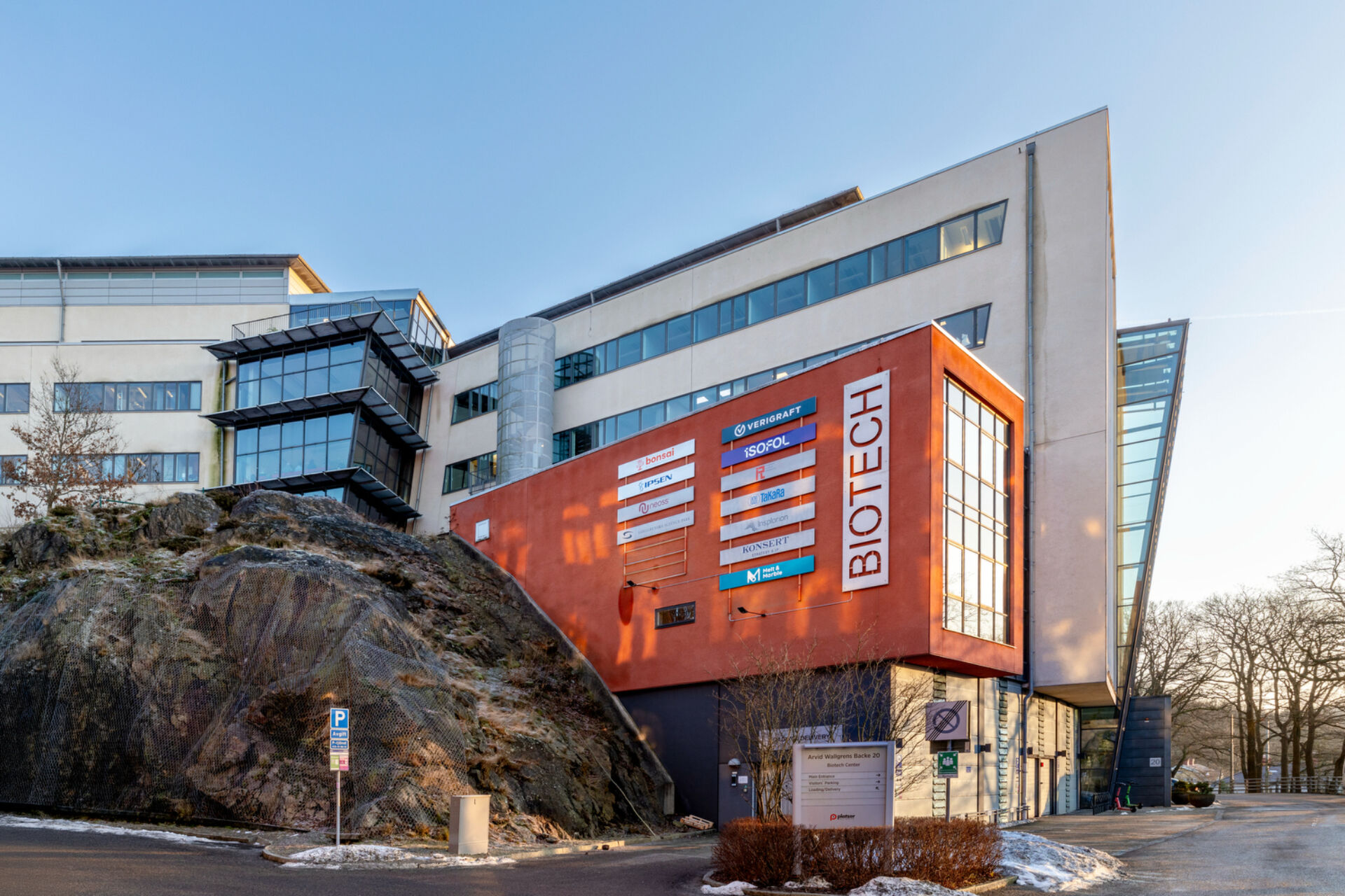 Biotech Center på Arvid Wallgrens Backe 20 uppfördes av Higab 2003. Huset är ritat av Liljewall Arkitekter och är byggt i stål, betong och glas och helt anpassad efter bioteknikföretagens speciella behov. Till exempel är ventilations- och övriga tekniksystem specialkonstruerade för att passa de olika laboratorierna. Dessutom har hyresgästerna haft stora möjligheter att själva anpassa kontor och laboratorier efter sina egna behov. Utöver kontoren och laboratorierna finns det flera gemensamma utrymmen, bland annat konferensrum, relaxavdelning, motionsrum och garage. På Medicinareberget har Biotech Center nära till både Sahlgrenska sjukhuset och olika företag, vilket skapar kontaktytor till såväl den akademiska världen som det västsvenska näringslivet.